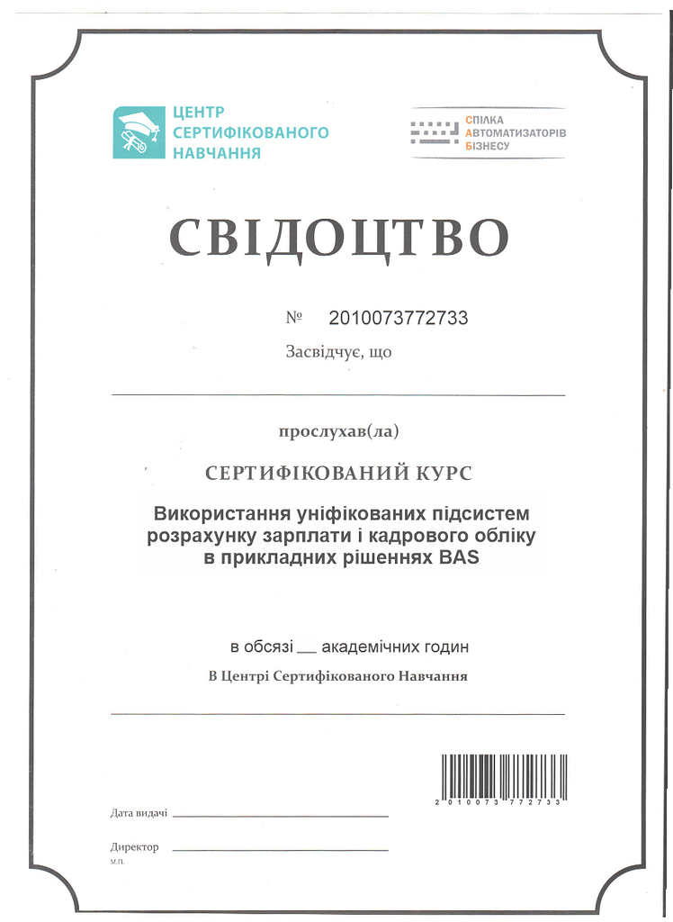 Після успішного завершення курсу Ви отримуєте Свідоцтво, яке цінується роботодавцями